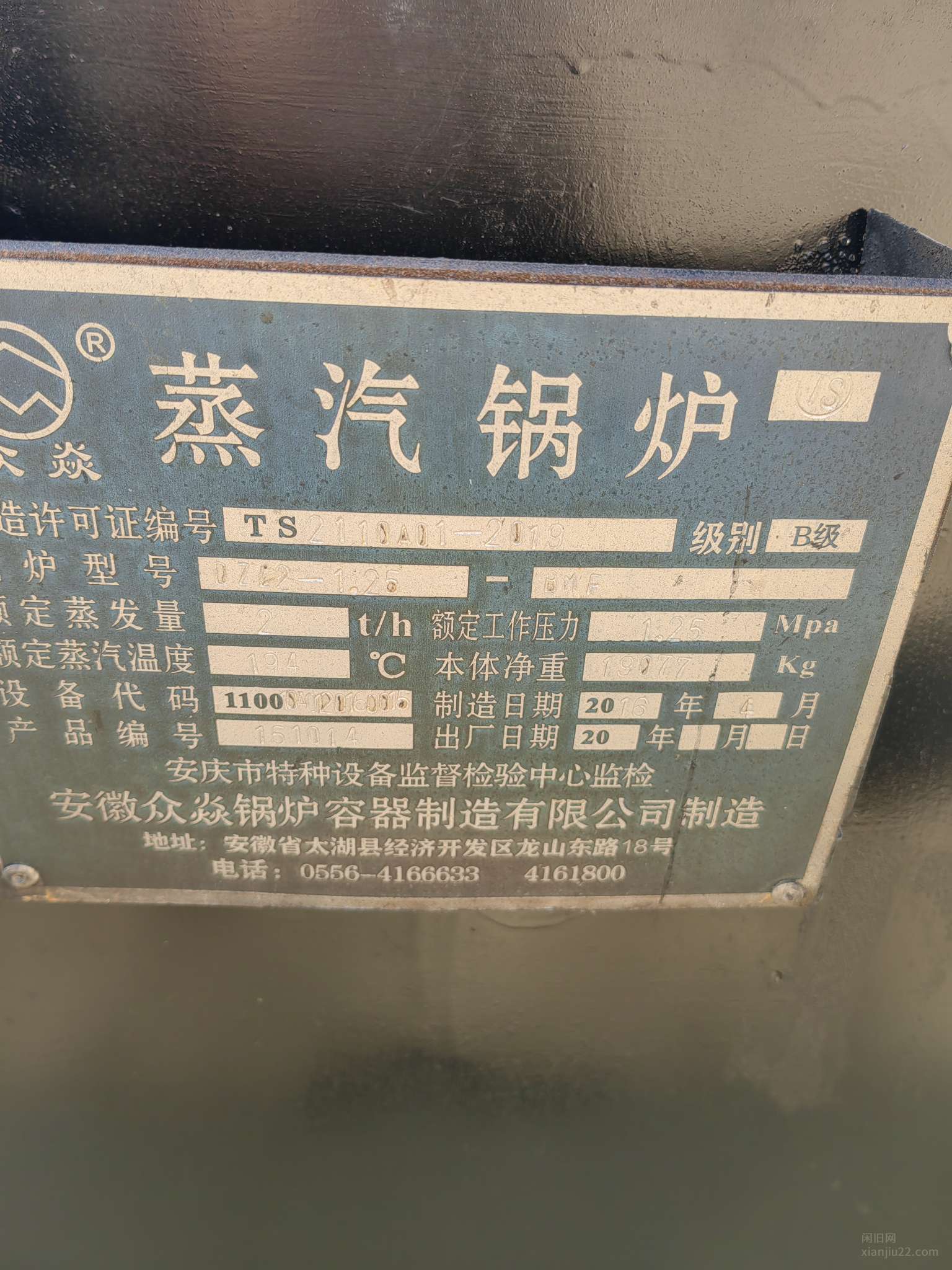 安徽众焱锅炉,2吨链条生物质蒸汽锅炉,13公斤压力,手续配件齐全,锅炉99成新。