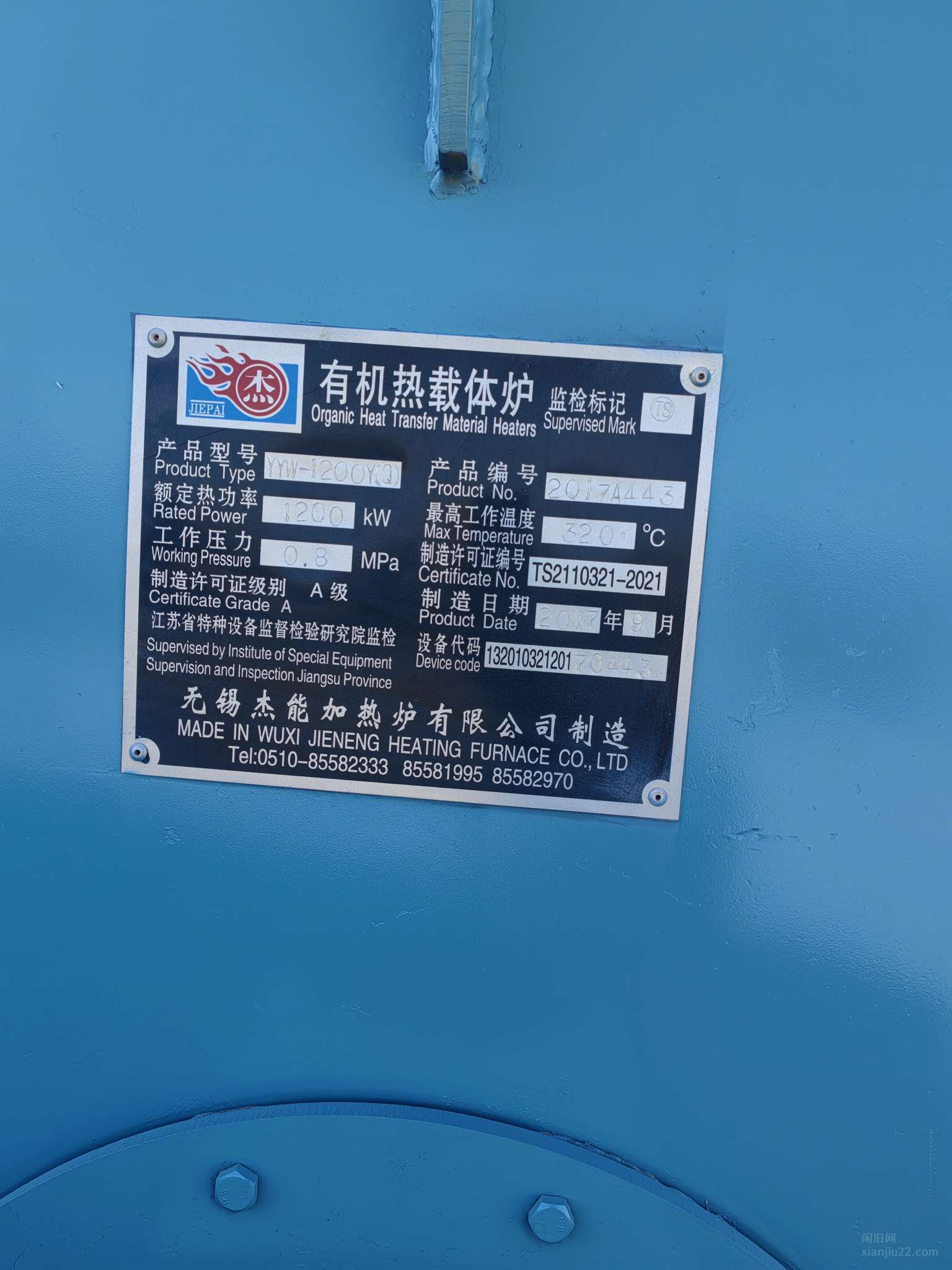 无锡杰能锅炉,100万大卡燃气导热油锅炉,纯新未点火,手续配件齐全。