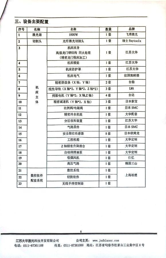 设备品牌:江苏大华激光
