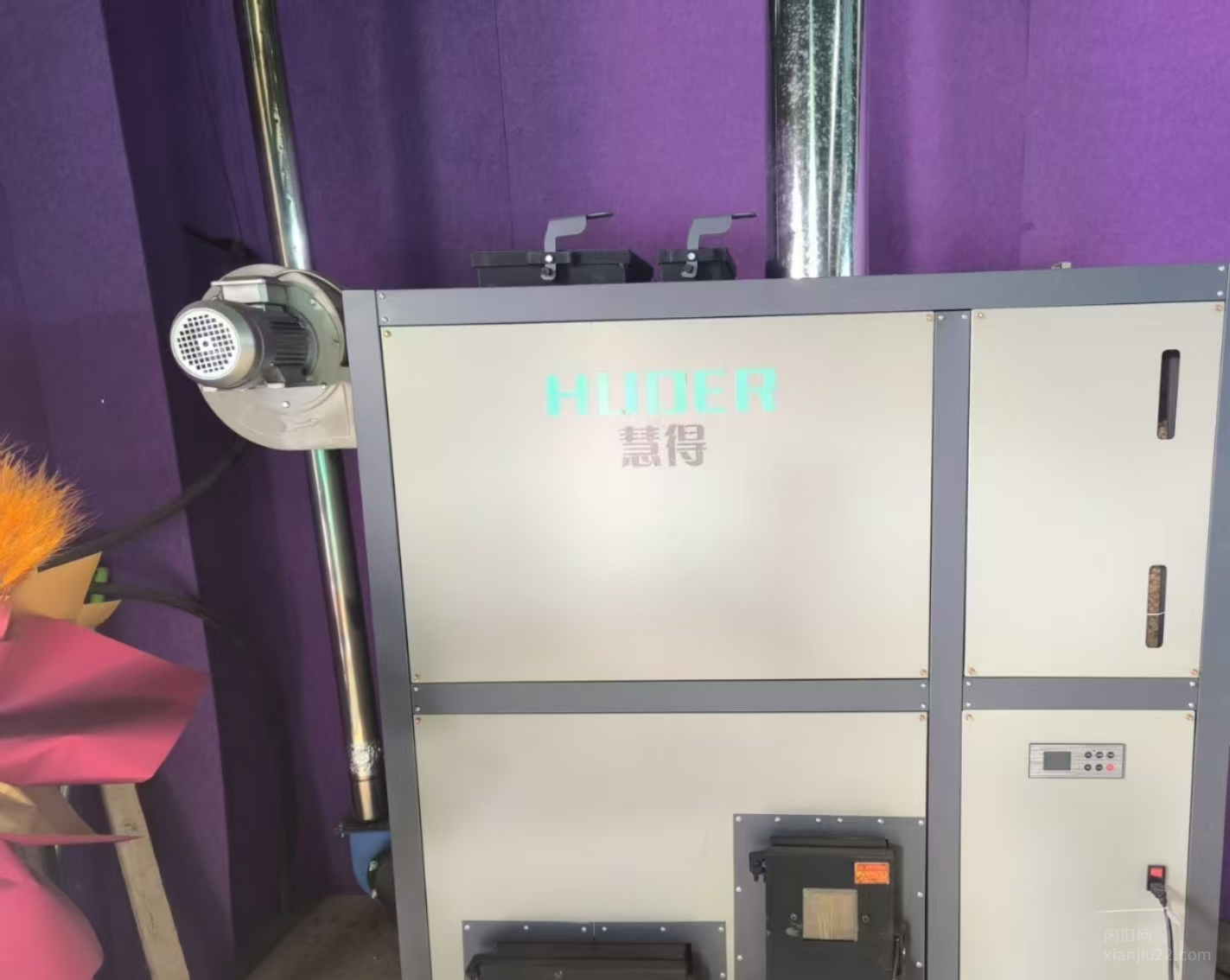 出售慧得生物质颗粒热风锅炉,型号HDKF-10,总功率2KW,适用于500平米-700平米左右工厂或运动场馆取暖。电压380V/220V,外形尺寸2✖️0.9✖️1.7米。2025年1月出厂,成色超新,没有磕碰。功能完好无维修。有需要的老板可以联系我详谈哦~。送七袋燃料,60米长通风管道