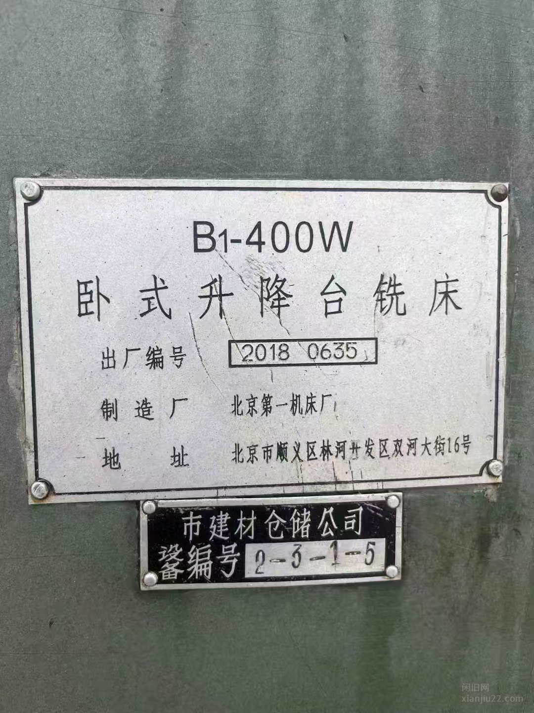 北京第一机床厂B1-400W万能升降台铣床,经典耐用。设备出厂编号2018,成色良好,轻微使用痕迹。功能完好无维修 有意者电联!