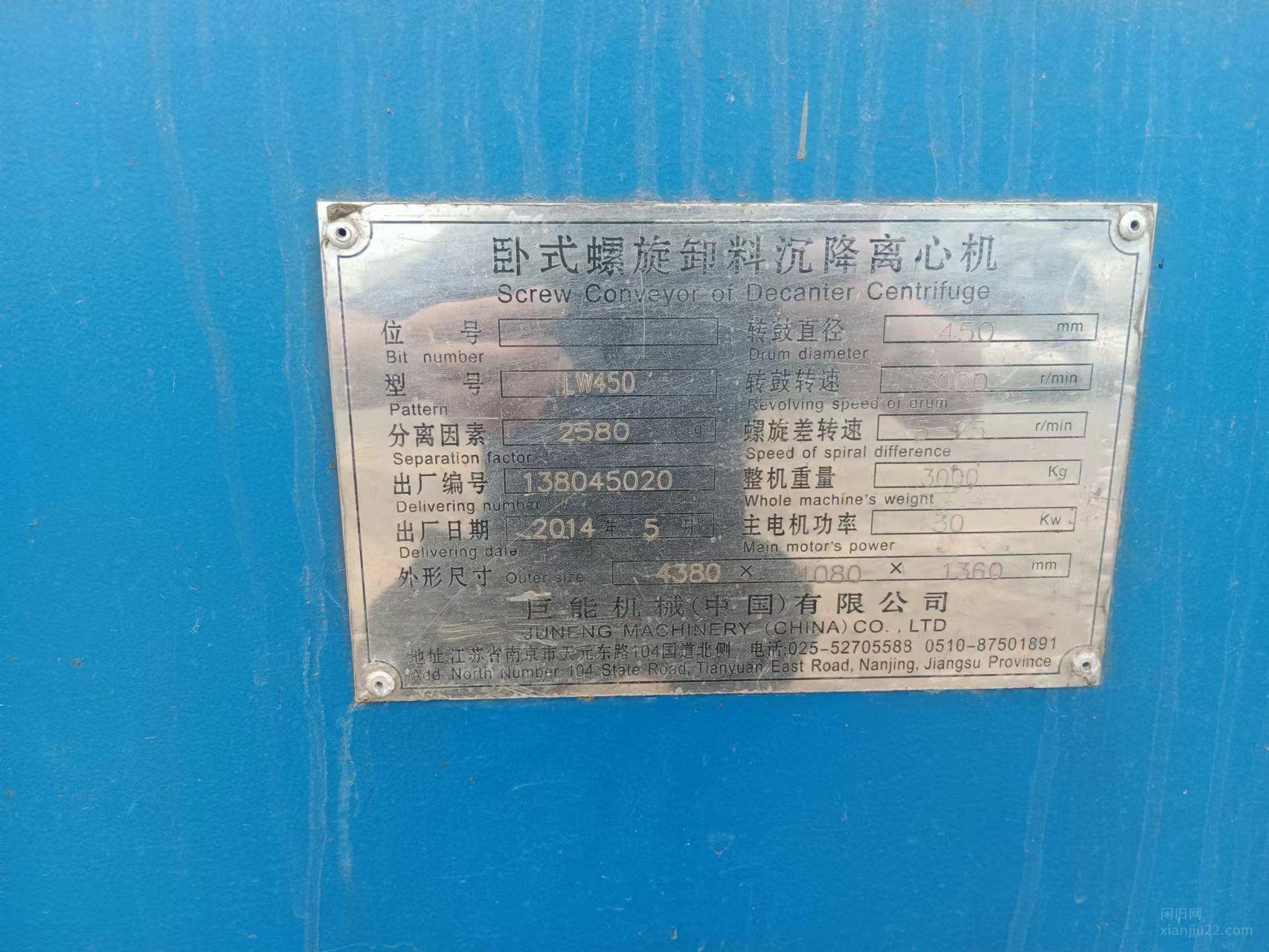 出售巨能机械450离心机