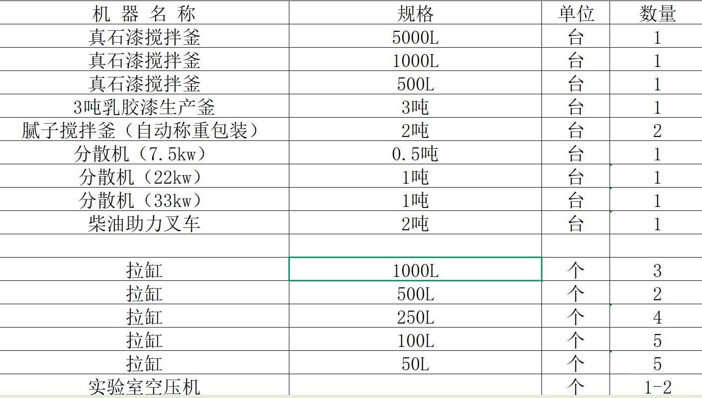 涂料公司帮朋友采购500/1000/5000升真石漆搅拌釜,33/22/75千瓦分散机,3吨腻子粉搅拌釜,2吨叉车,拉缸等1批(要柬埔寨工厂用详见清单)