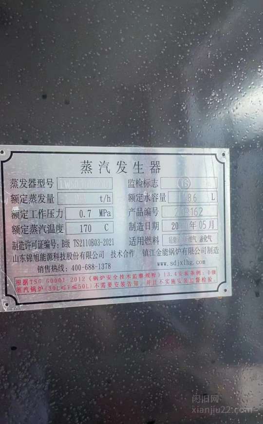 个人出售闲置二手蒸汽锅炉,2017年1月1日购买的,买来用了一年,以后一直闲置,型号DZL10-1.25-LT