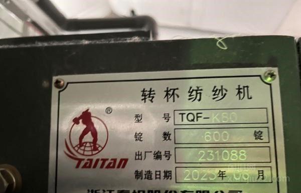 工厂转让一台闲置23年6月份泰坦TQF-K80转杯纺纱机,95成新,仅试机就未使用了,