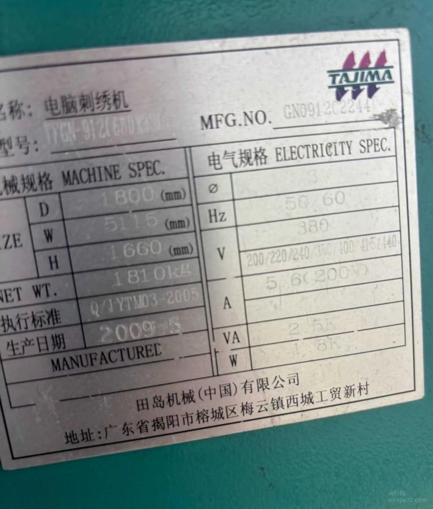 河南平顶山田岛绣花机出售