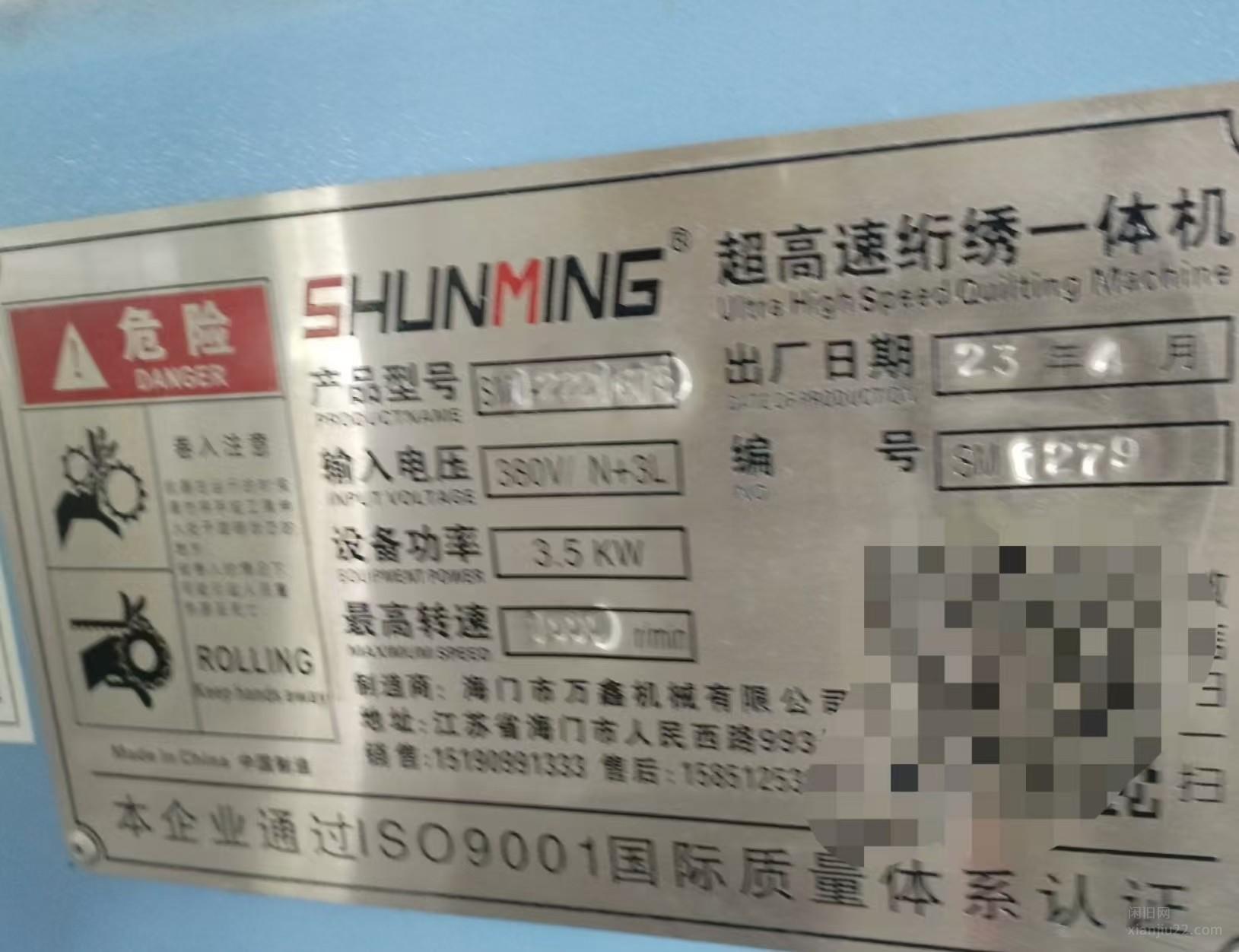 江西鹰潭2台顺铭机械超高速绗绣一体机出售