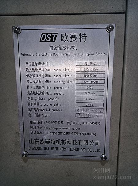 出售山东欧赛特1650型全自动平压平模切机