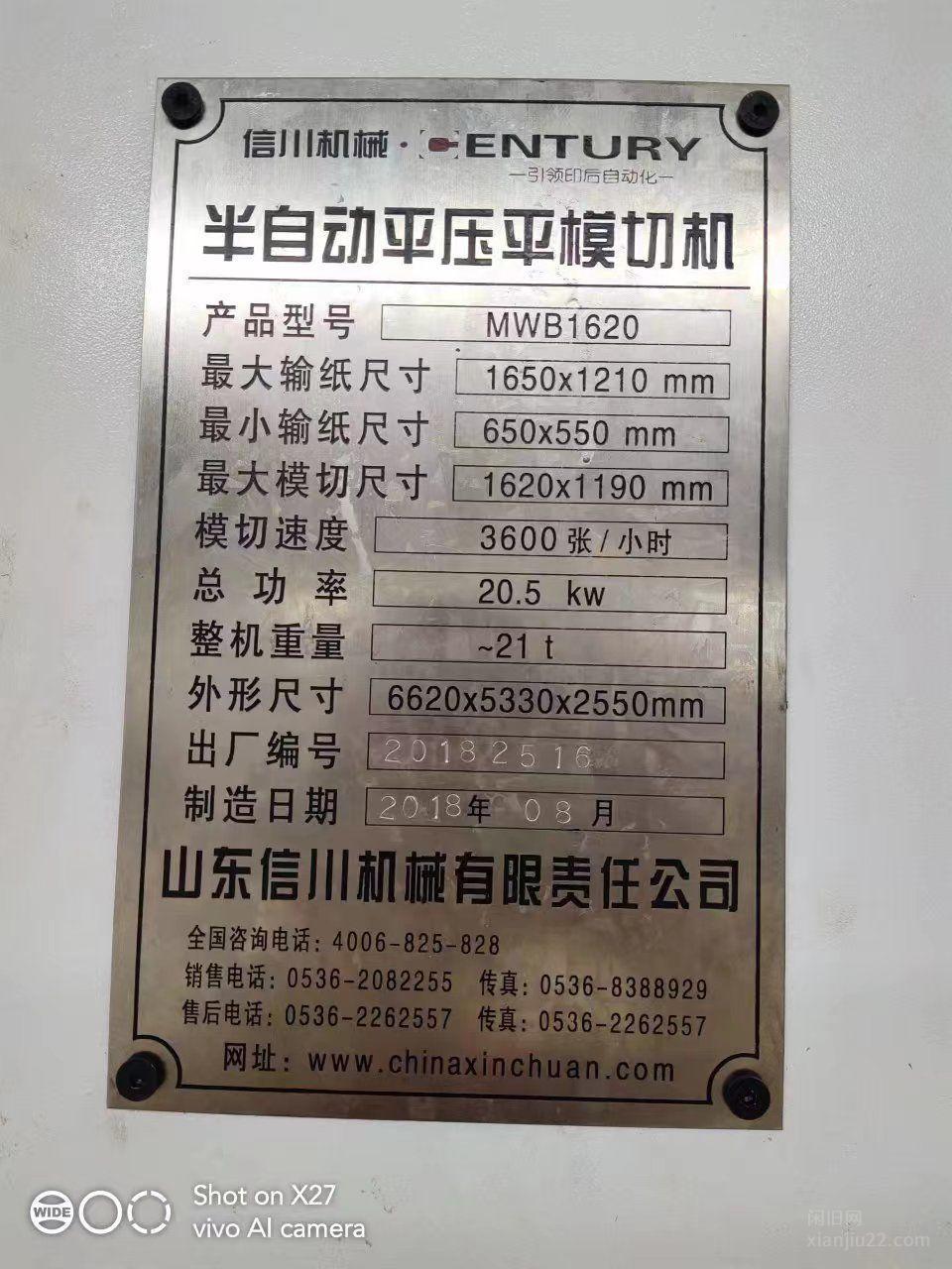 出售信川1620半自动平压平模切机