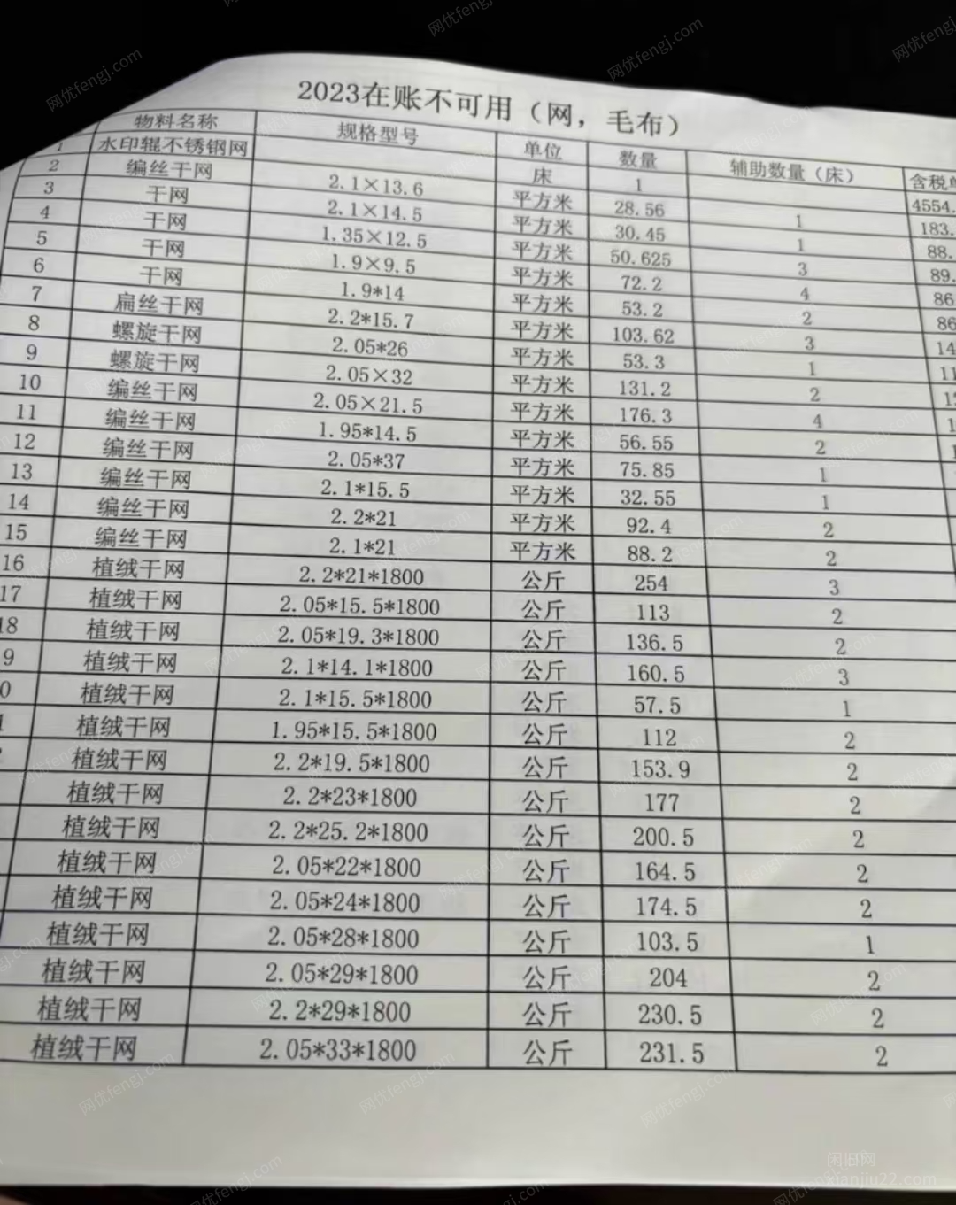 山东烟台出售一批造纸机用的毛布,干网,成型网