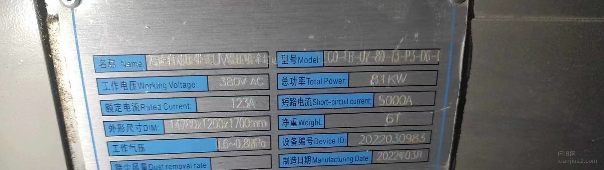 安徽合肥处理1米3双灯9点6千瓦UV固化机