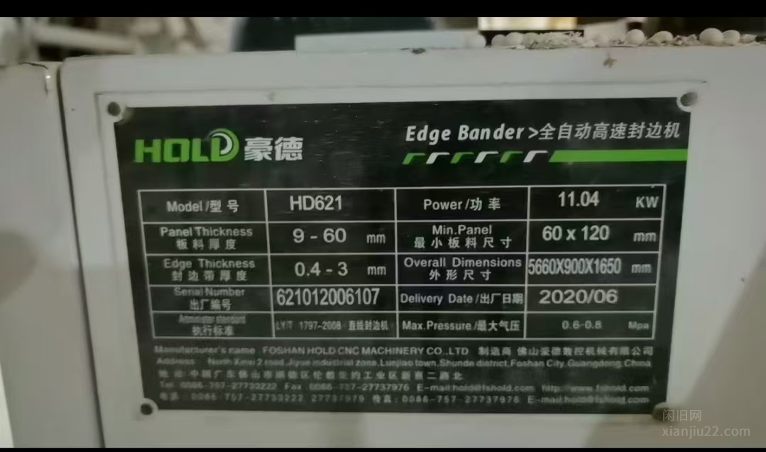 出售20年6月豪德HD621全自动高速封边机
