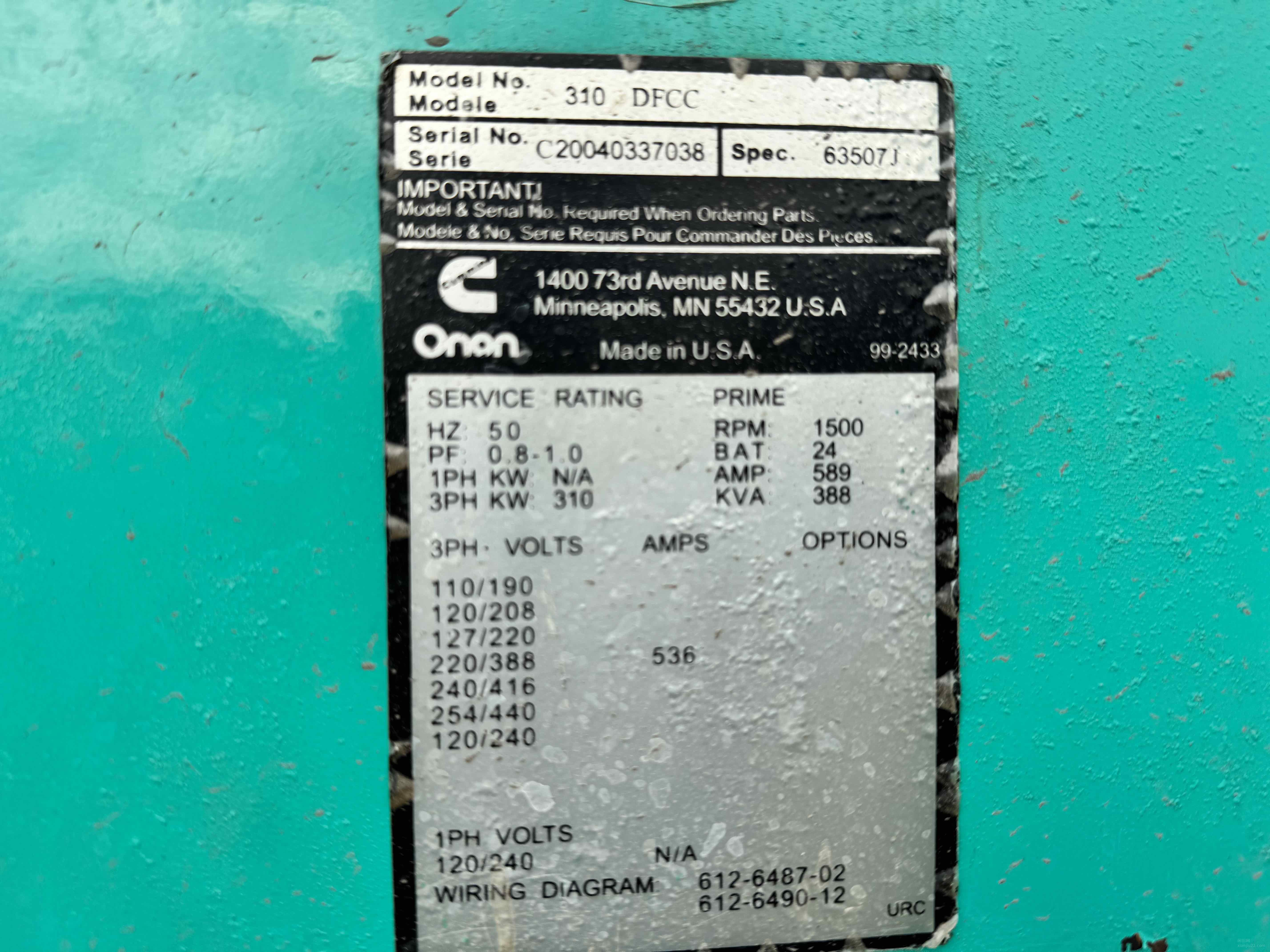 出售310千瓦康明斯一台