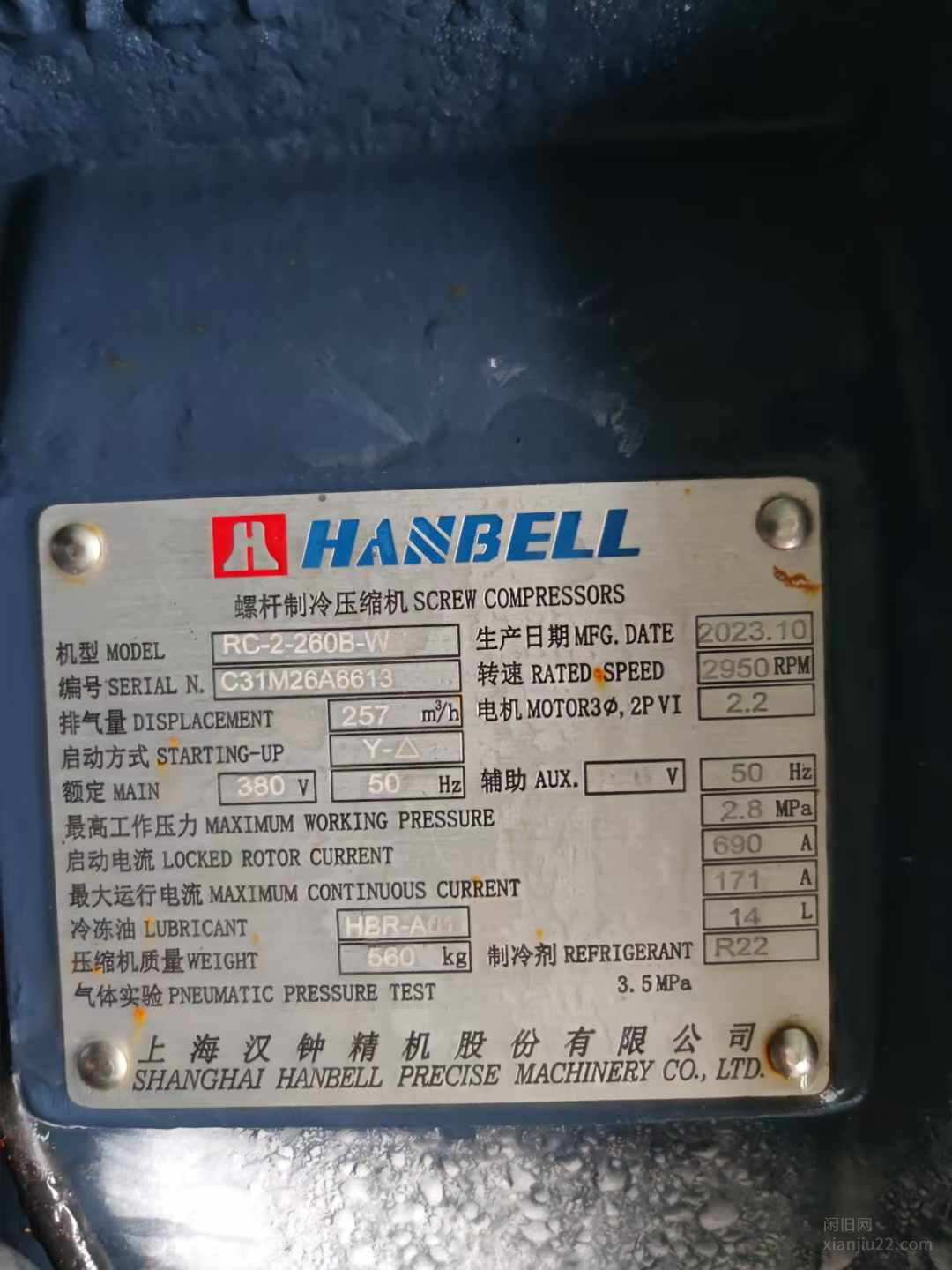 2023年螺杆,中央空调,压缩机一台,处理