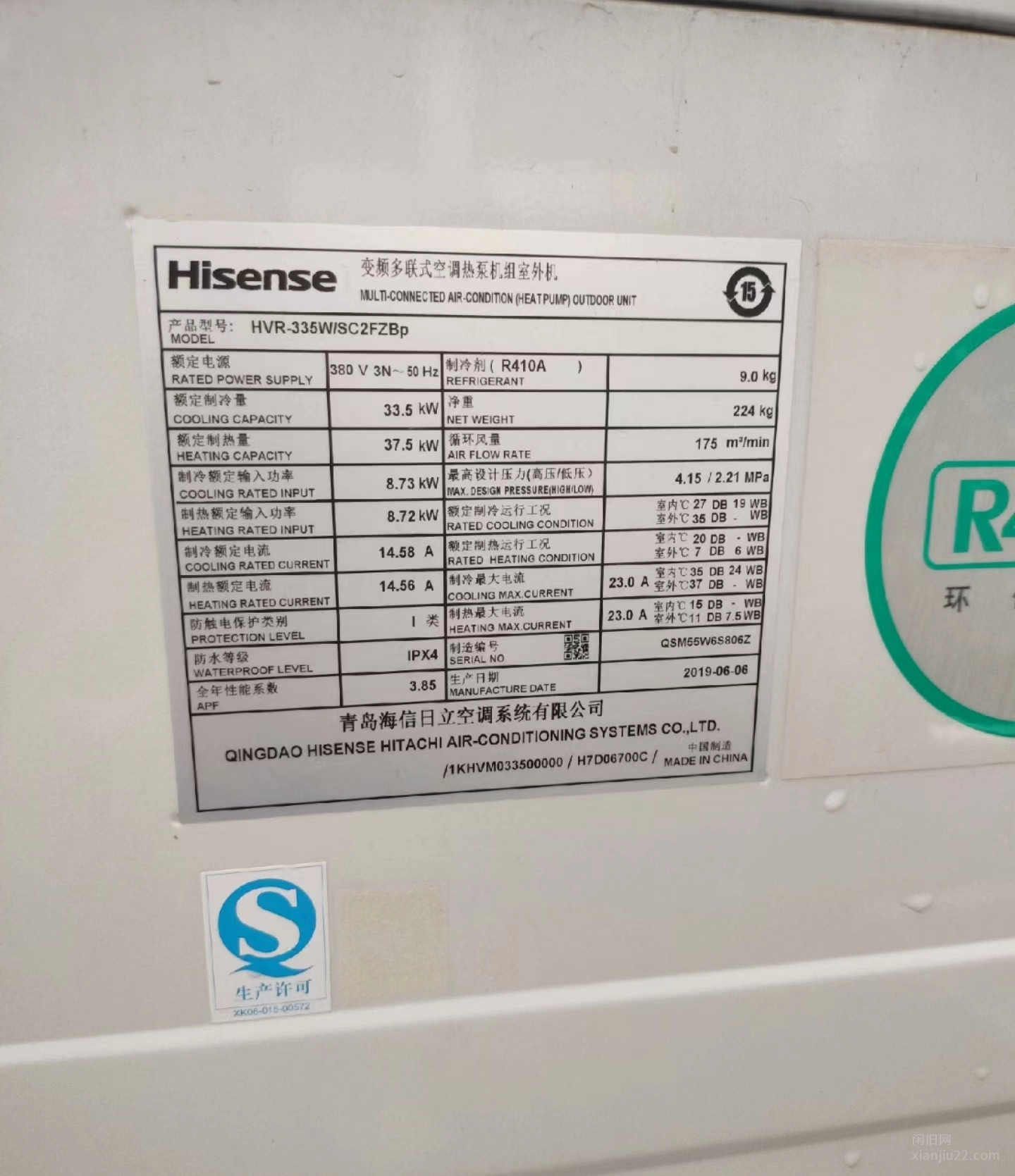 河北唐山出售海信中央空调,15匹一拖三风管机