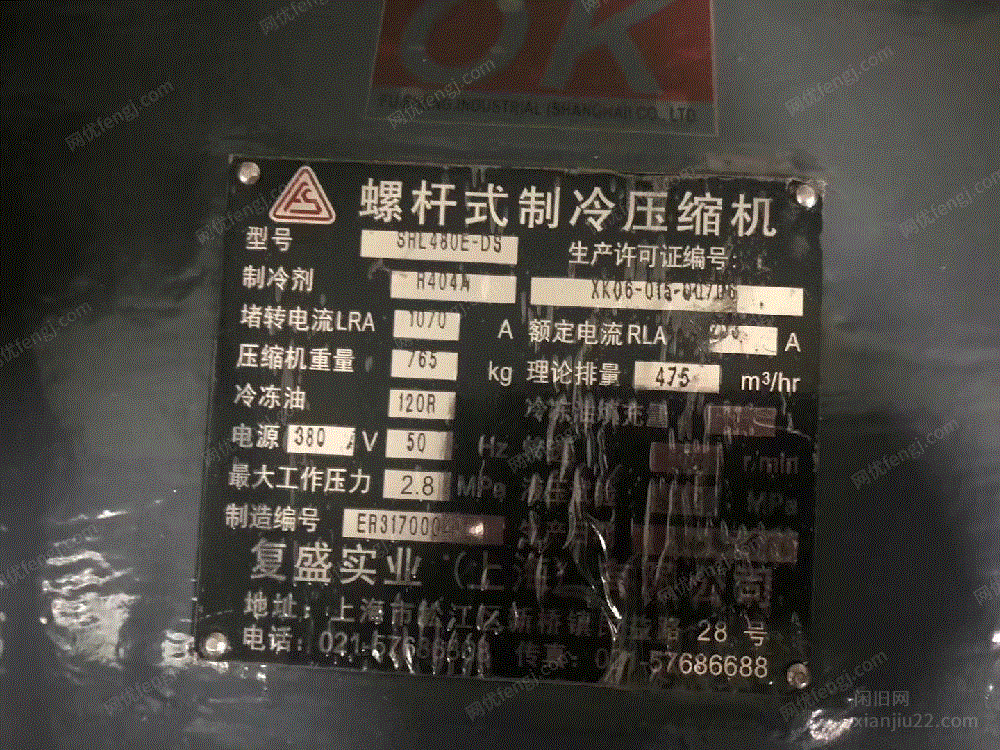 出售1吨网带式氟利昂螺杆制冷压缩机!