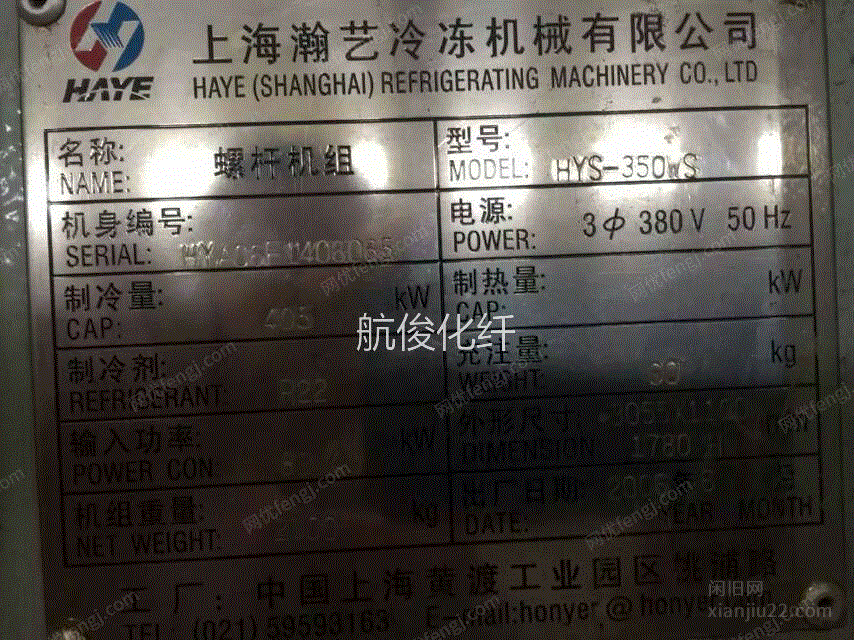 出售二手螺杆机组HYS-350小制冷机