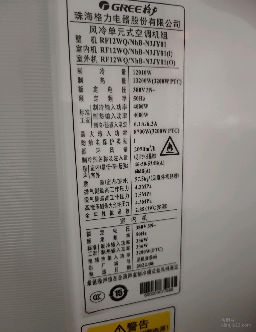 安徽黄山出售22年10/12年9.5成新格力大5P柜机空调