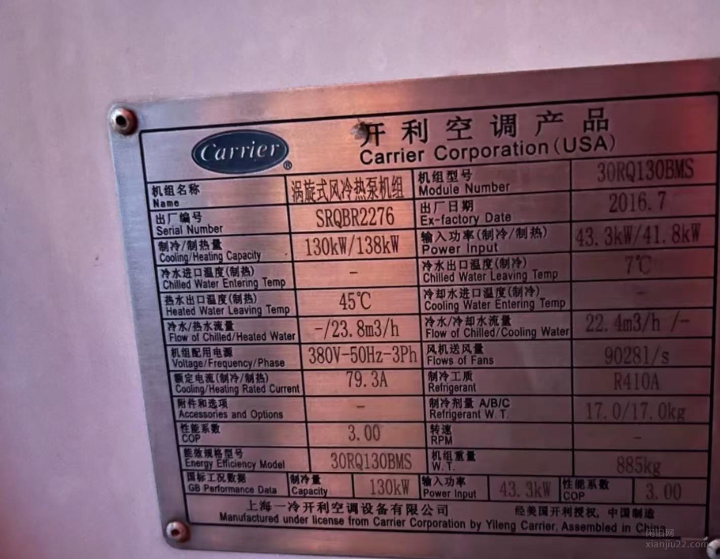 云南昆明出售美国开利空调130KW风冷热泵机组