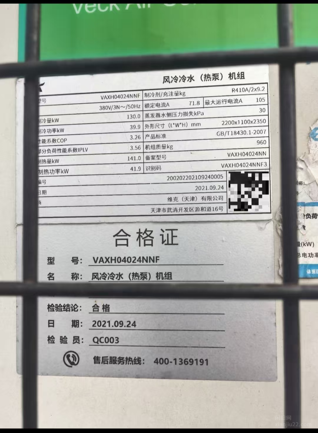 出售_维克风冷冷水热泵机组,制冷量130KW