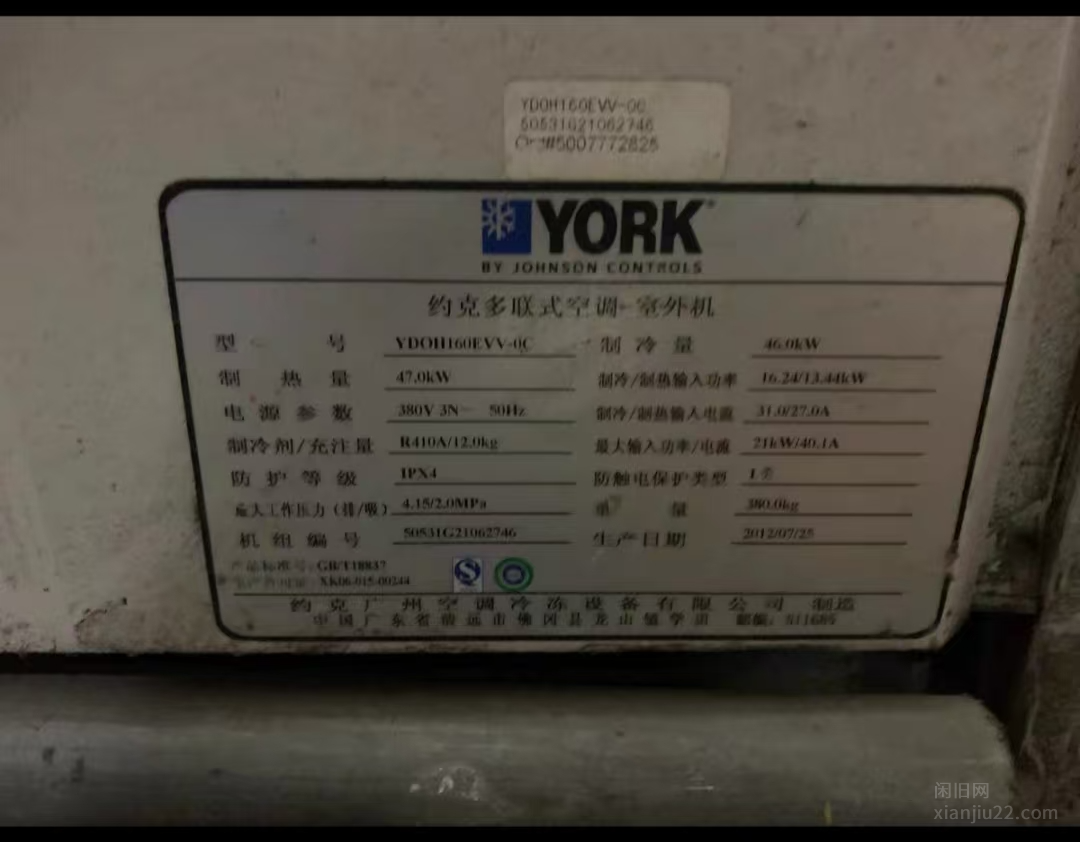 出售约克中央空调3台,含18个出风口