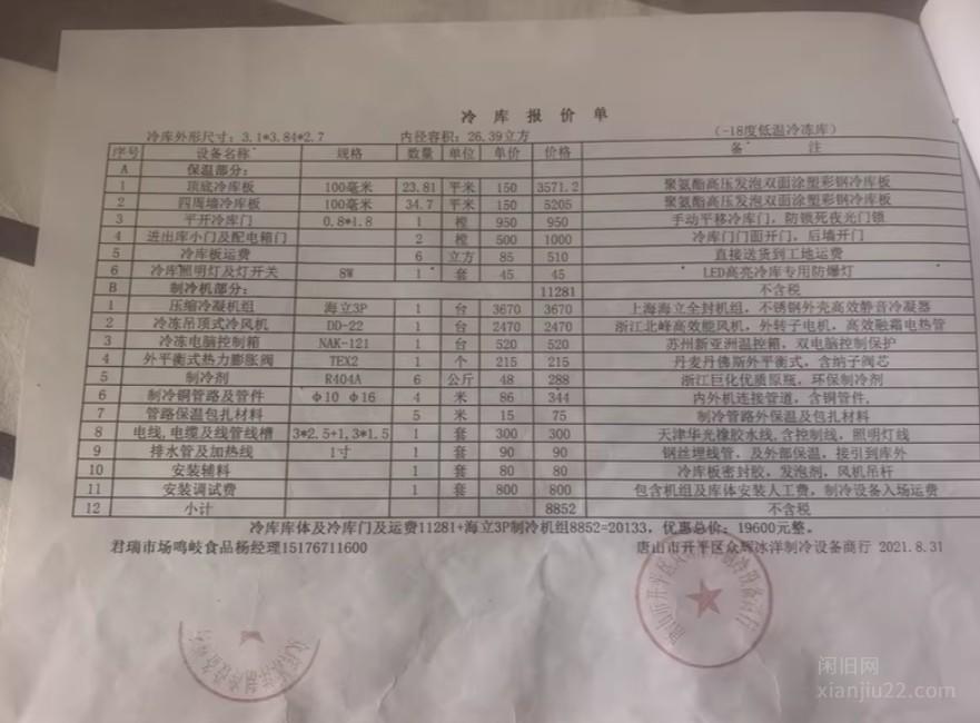 江西上饶24平方冰棍冷库低价转让