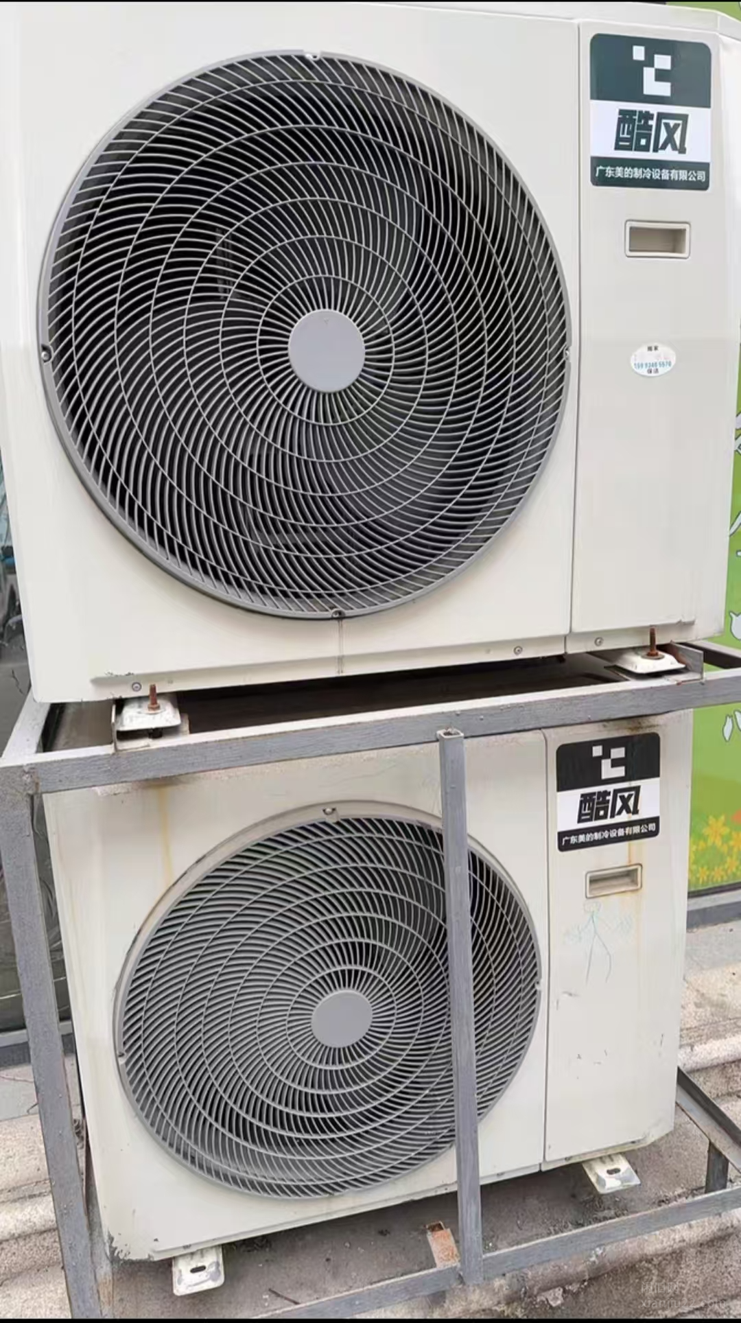 出售2台美的5匹吸顶空调、货架、冷冻柜等