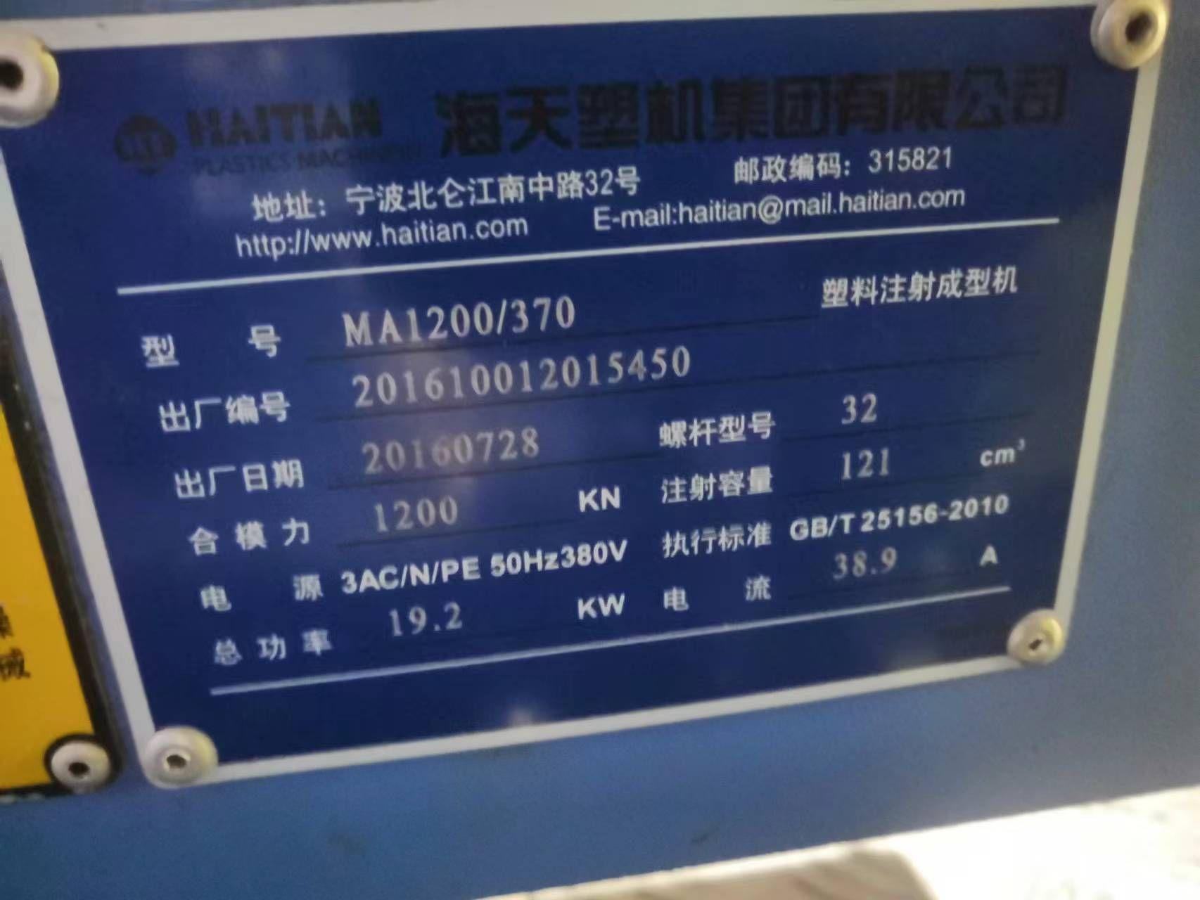 出售海天MA1200/730注塑机