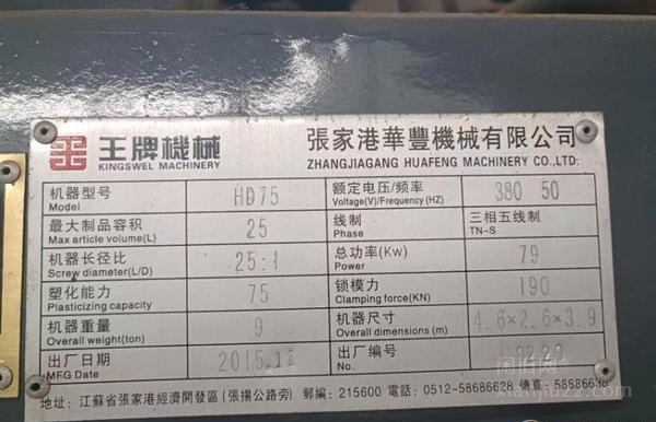 江苏企业处理6台吹塑机:王.牌75三台,普信90、普信80两台.