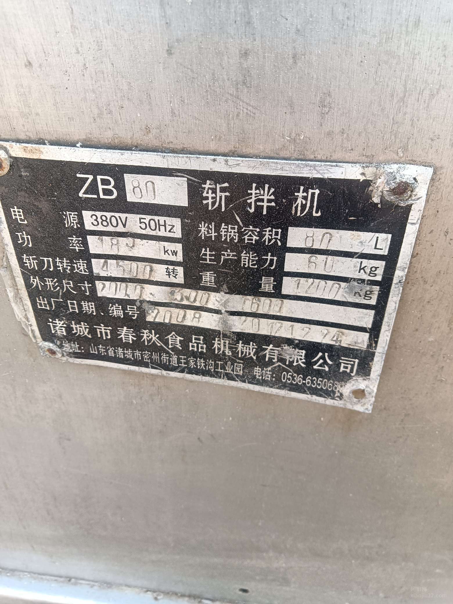闲置2台80斩拌机