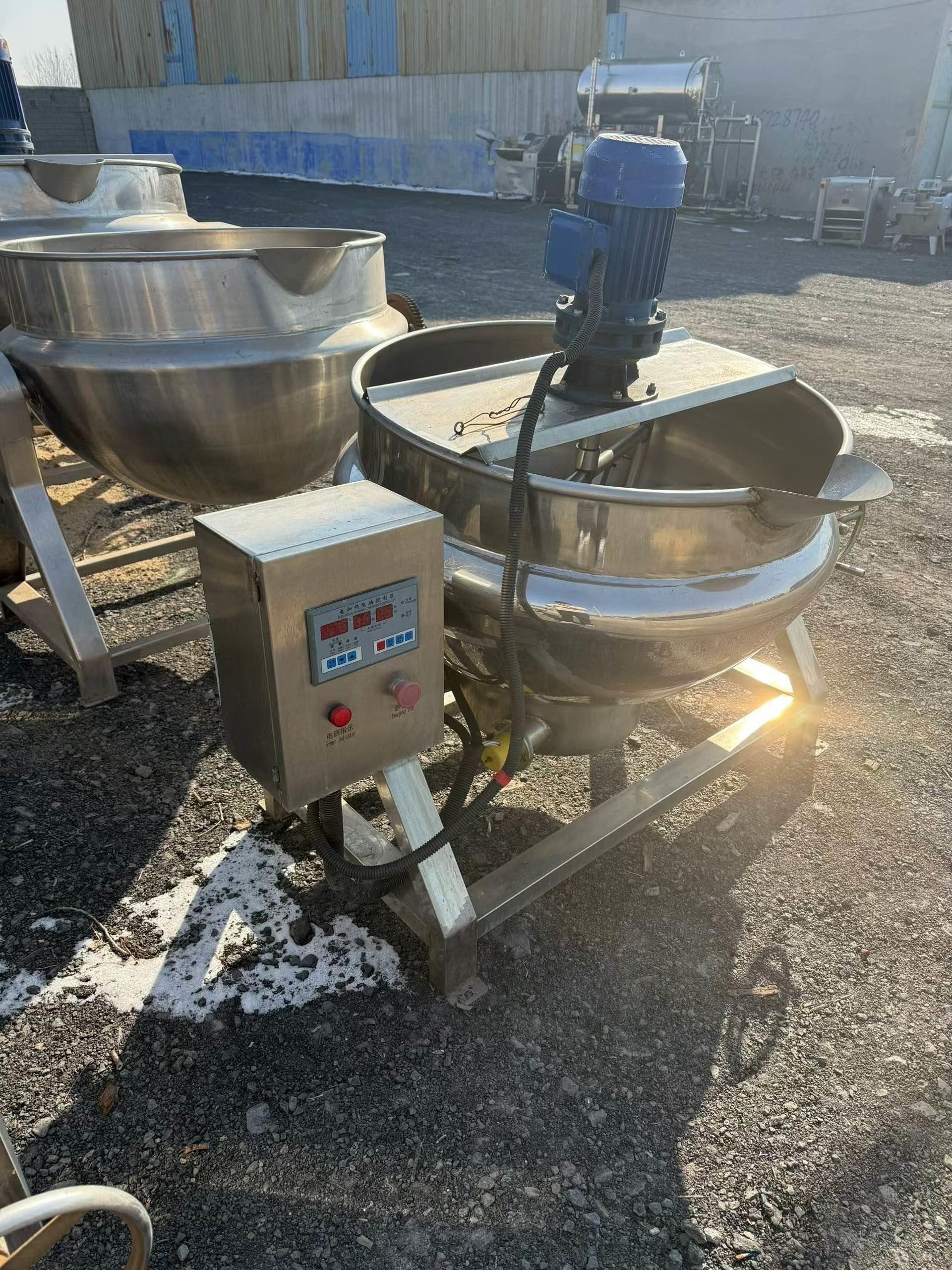 300升电加热搅拌夹层锅,成色新,运行稳定,适合食品厂、中央厨房、卤味店、酱料厂使用。