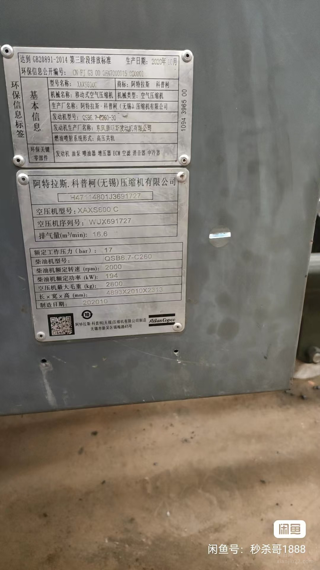 出售阿特拉斯空压机,阿特拉斯600C