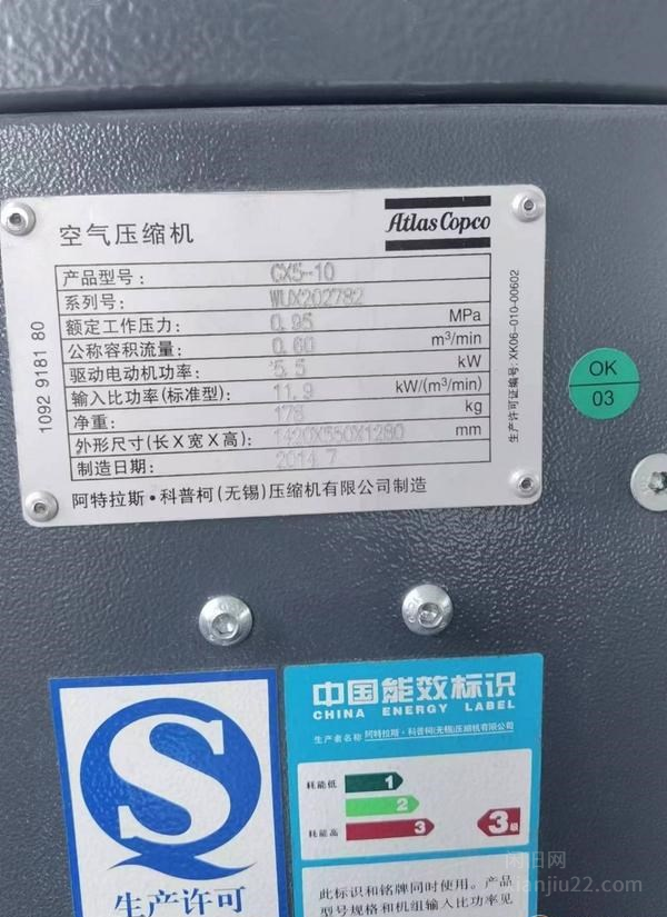 浙江杭州转让阿特拉斯小空压机