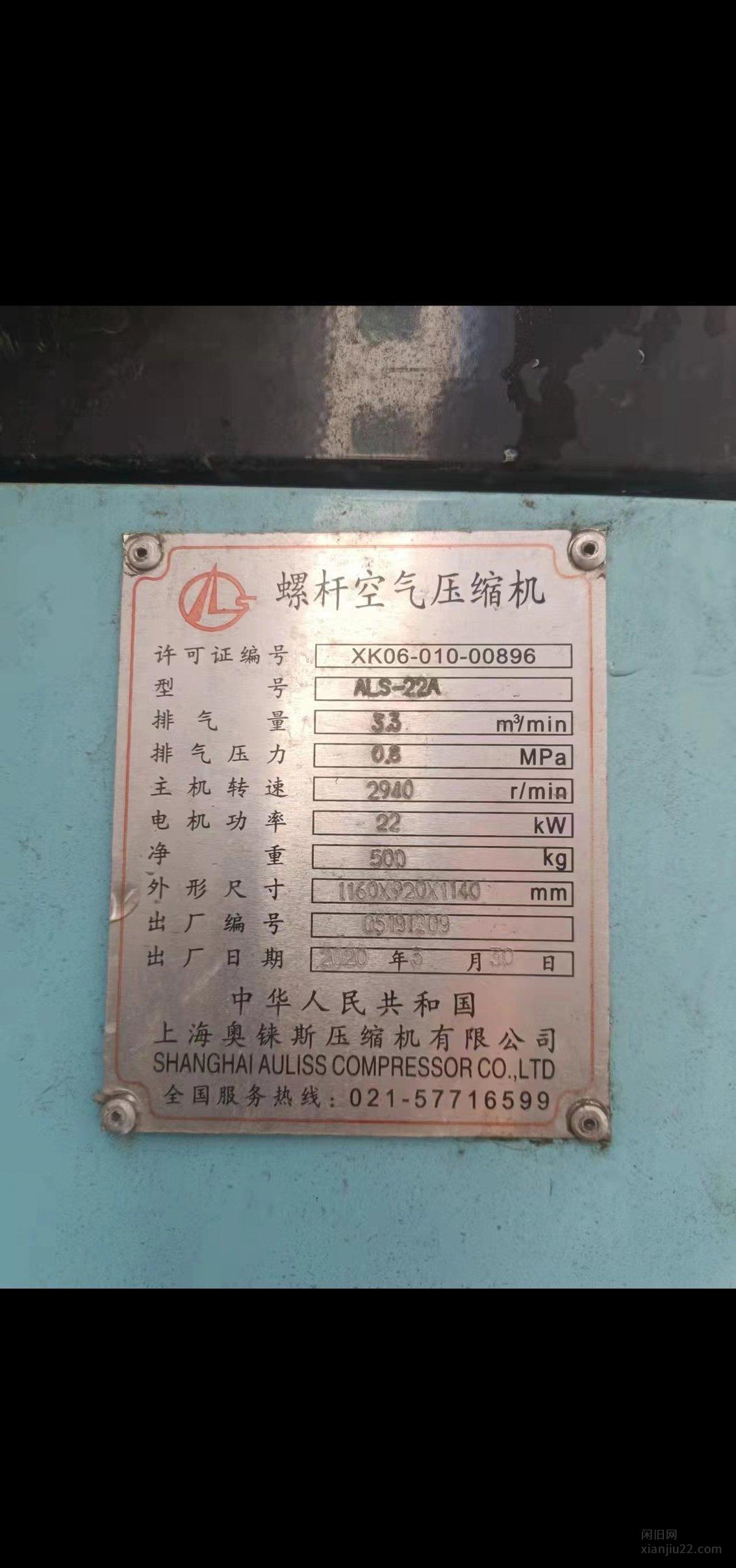 浙江绍兴转让22千瓦空压机和储气罐