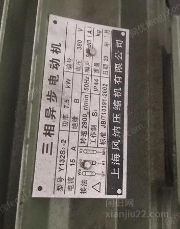 处理两台空压机,上海风纳功率7.5KW,浙江盛强牌