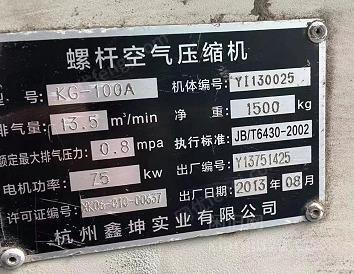 出售75KW螺杆空压机,正在使用中的设备