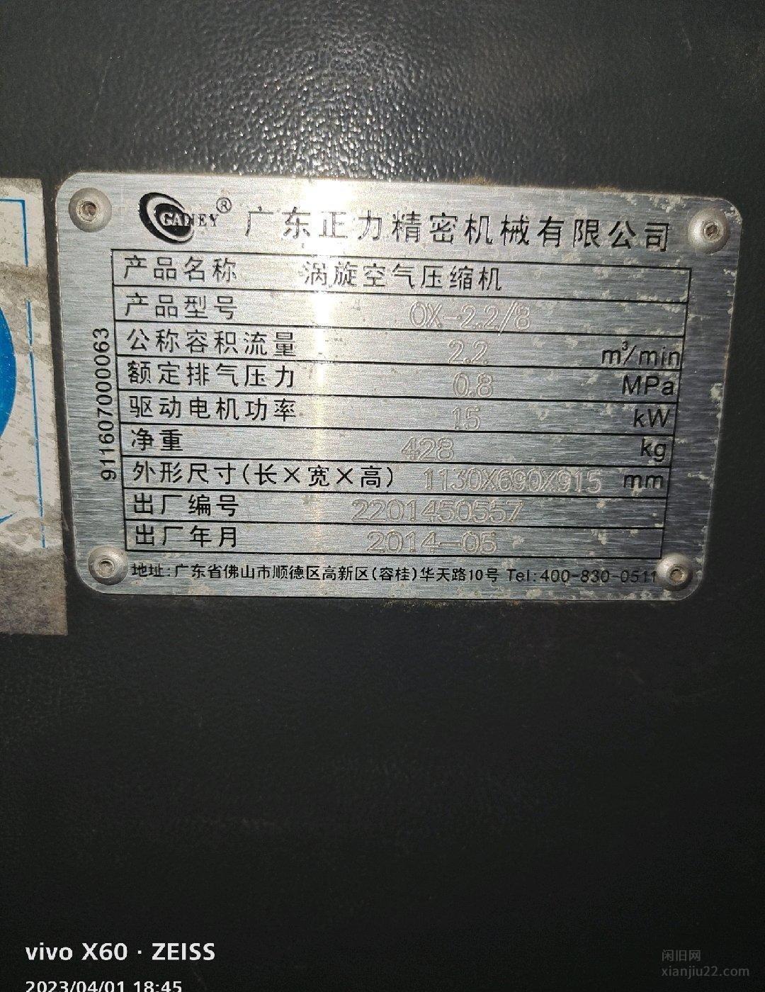 广西南宁转让志高22千瓦永磁变频空压机