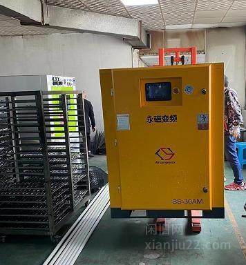 出售9成新永磁变频空压机1套,22KW,带1立方储气罐,1.5立方冷干机