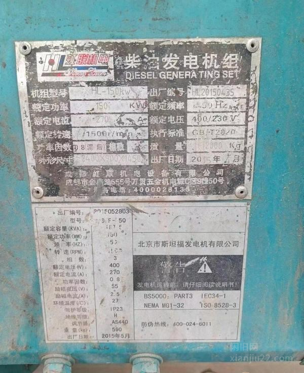 出售闲置100kw柴油