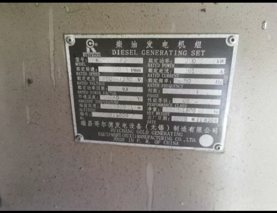 出售康明斯200千瓦柴油