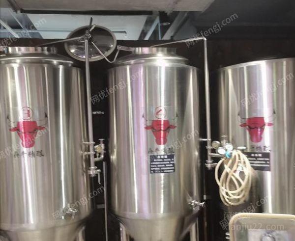 工厂出售使用中2019年山东济南酿酒设备,发酵罐4个(500升),糖化罐1个,冰水罐1个(可以带动12个发酵罐降温),过滤旋沉罐1个,电蒸汽