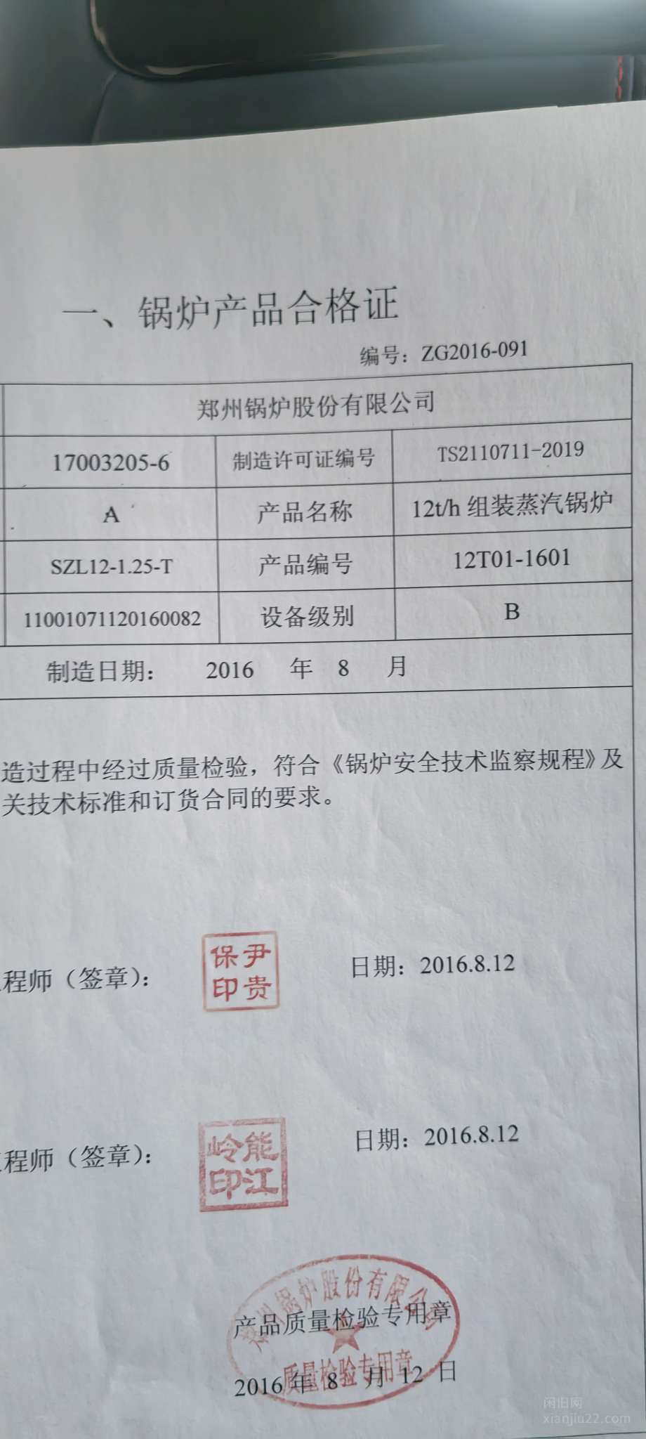 转让2021年2吨燃油燃气蒸汽