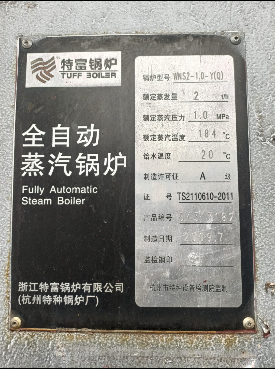 出售09年2吨特富全自动蒸汽