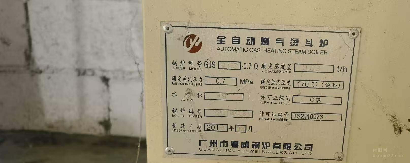 山东青岛低价转让九九成新二吨燃气蒸汽