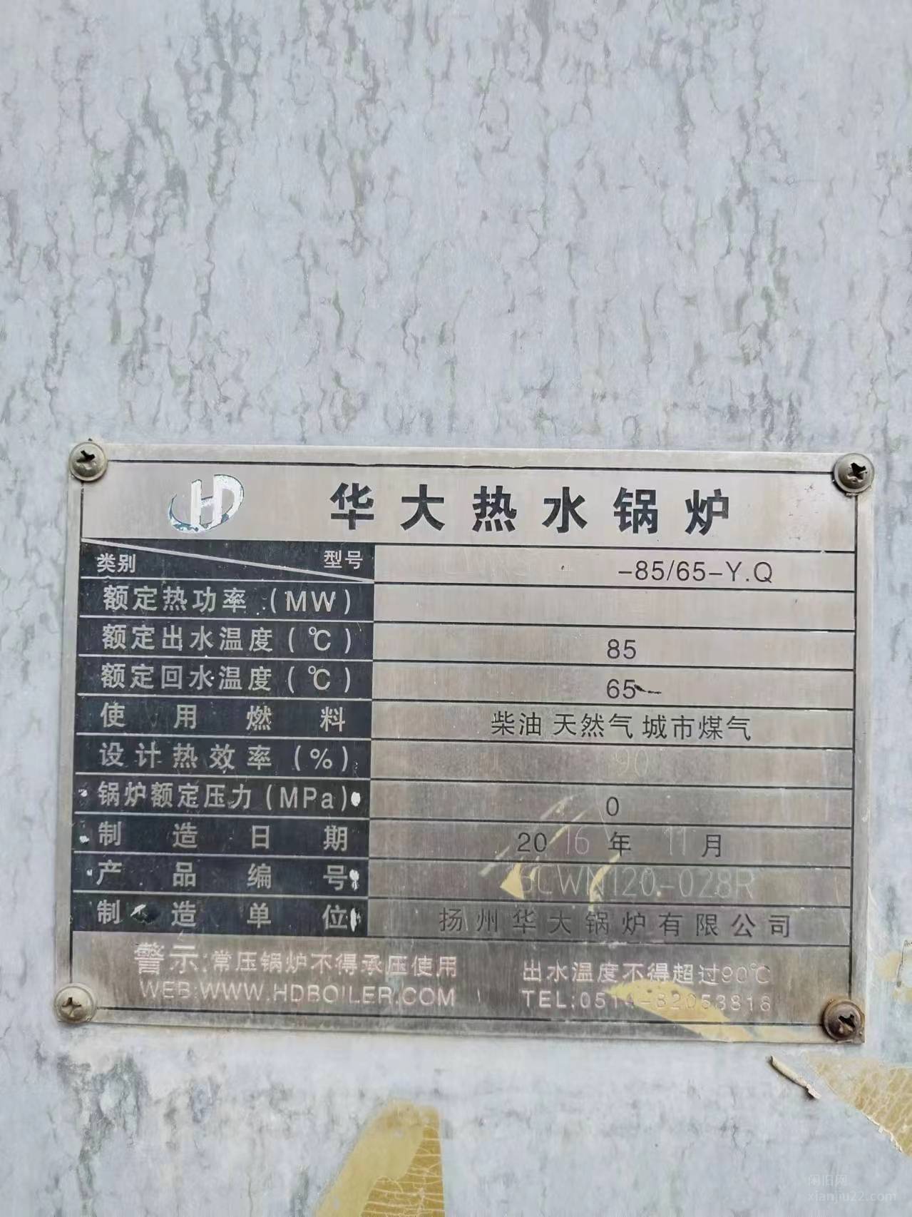 河北廊坊处理一台16年2吨生物质热水