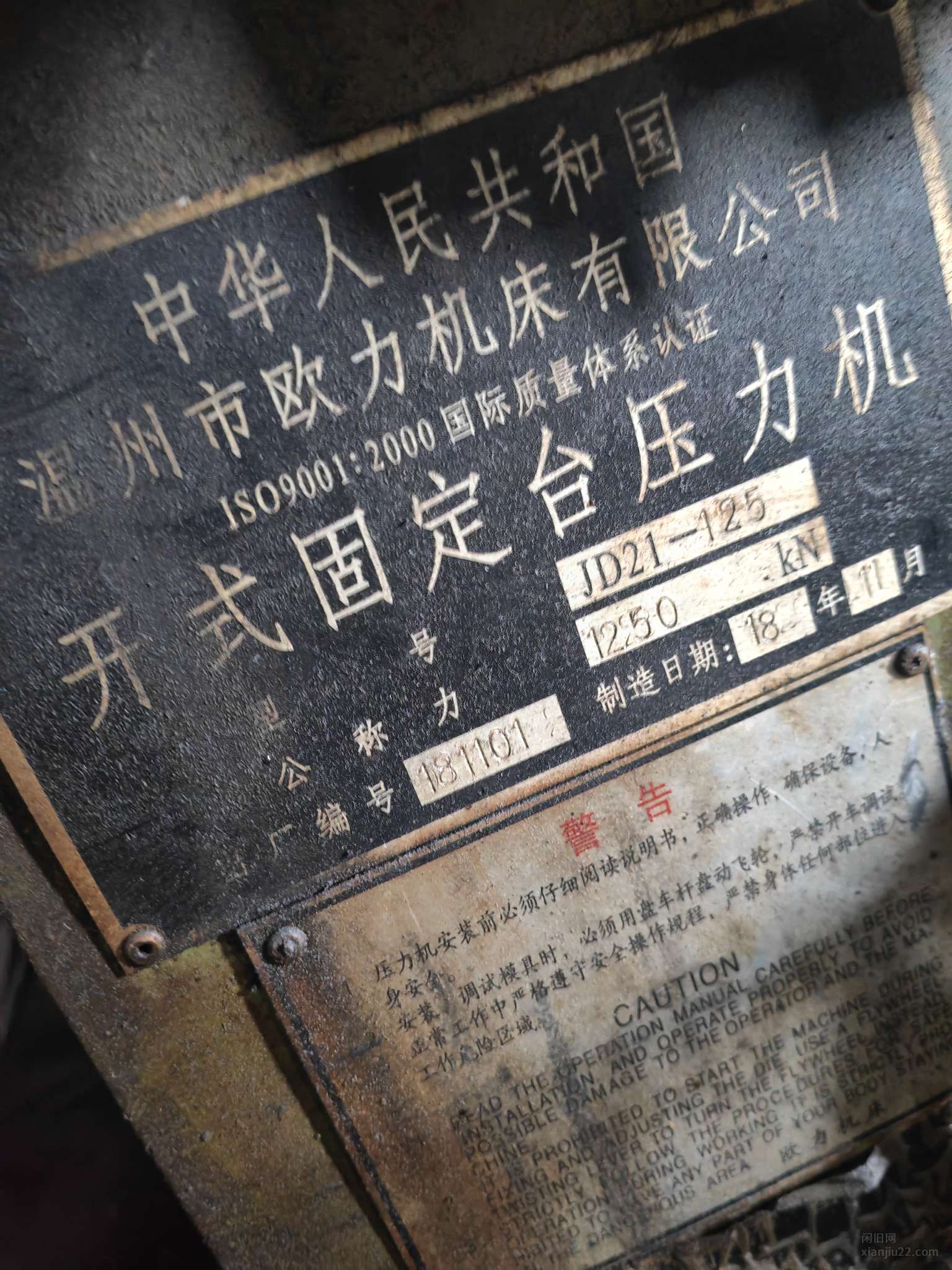 欧力125吨冲床洗洗九成新,工厂用的很少,便宜出售