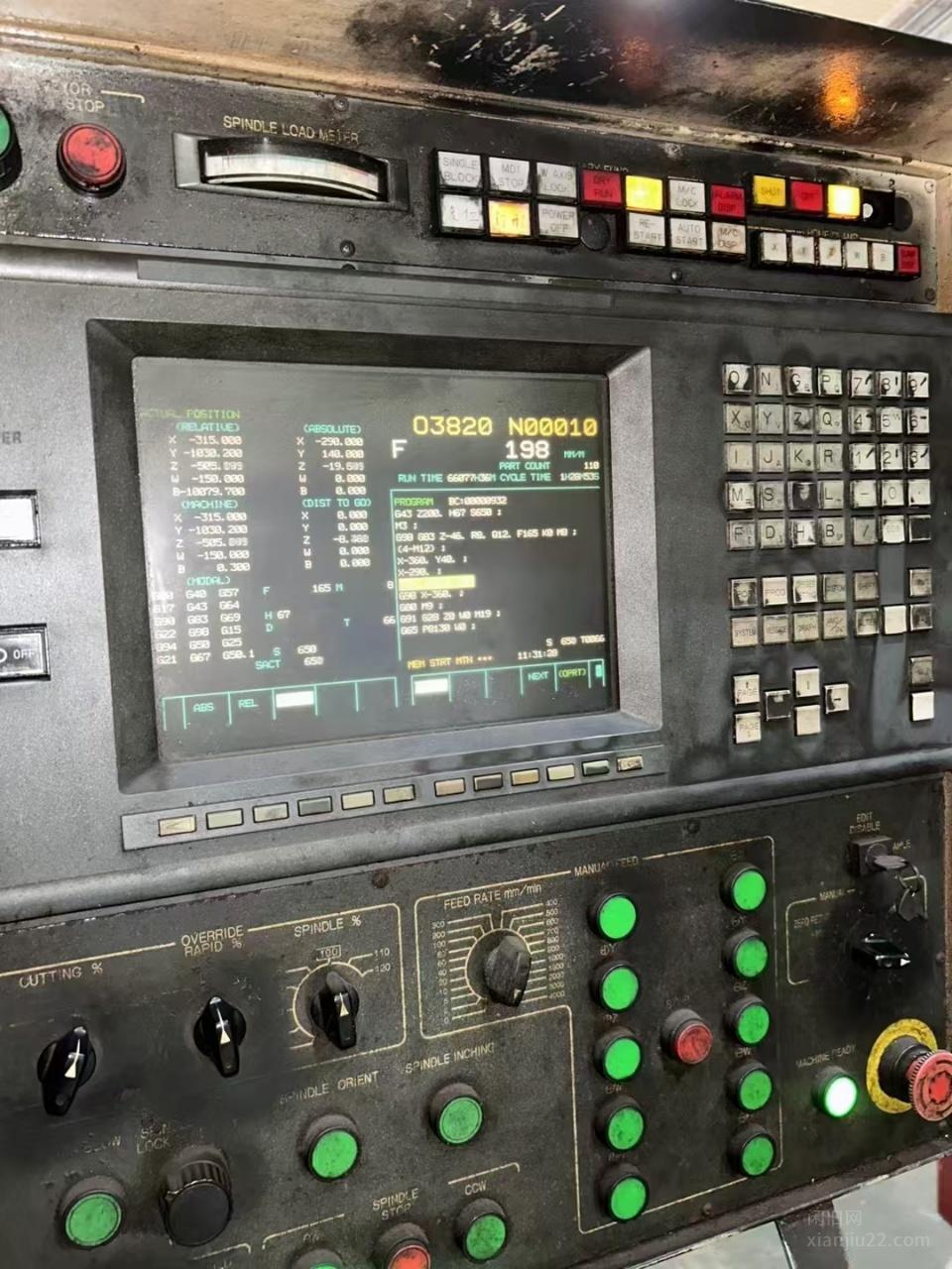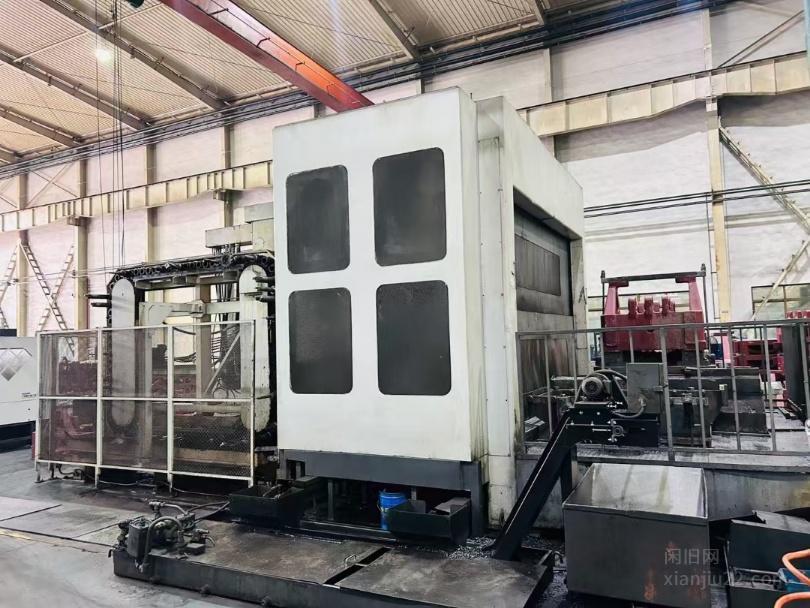 日本MITSUBISHI三菱重工M-HT13/1250双台镗床/卧式加工中心,工作台尺寸1250*1250,最大回转直径2.5米,三轴线轨,XYZWB轴行程1650*1400*1100*500*360,主轴BT50/6000转/齿轮头/镗杆直径130mm,B轴转台0.001°,带链式刀库80把刀,带光栅尺全闭环,带螺杆排屑机+外部链式排屑机,发那科160i-MA彩屏系统,带以太网,高配阿法驱动器,集团公司少用,机况非常好,买到就是赚到。